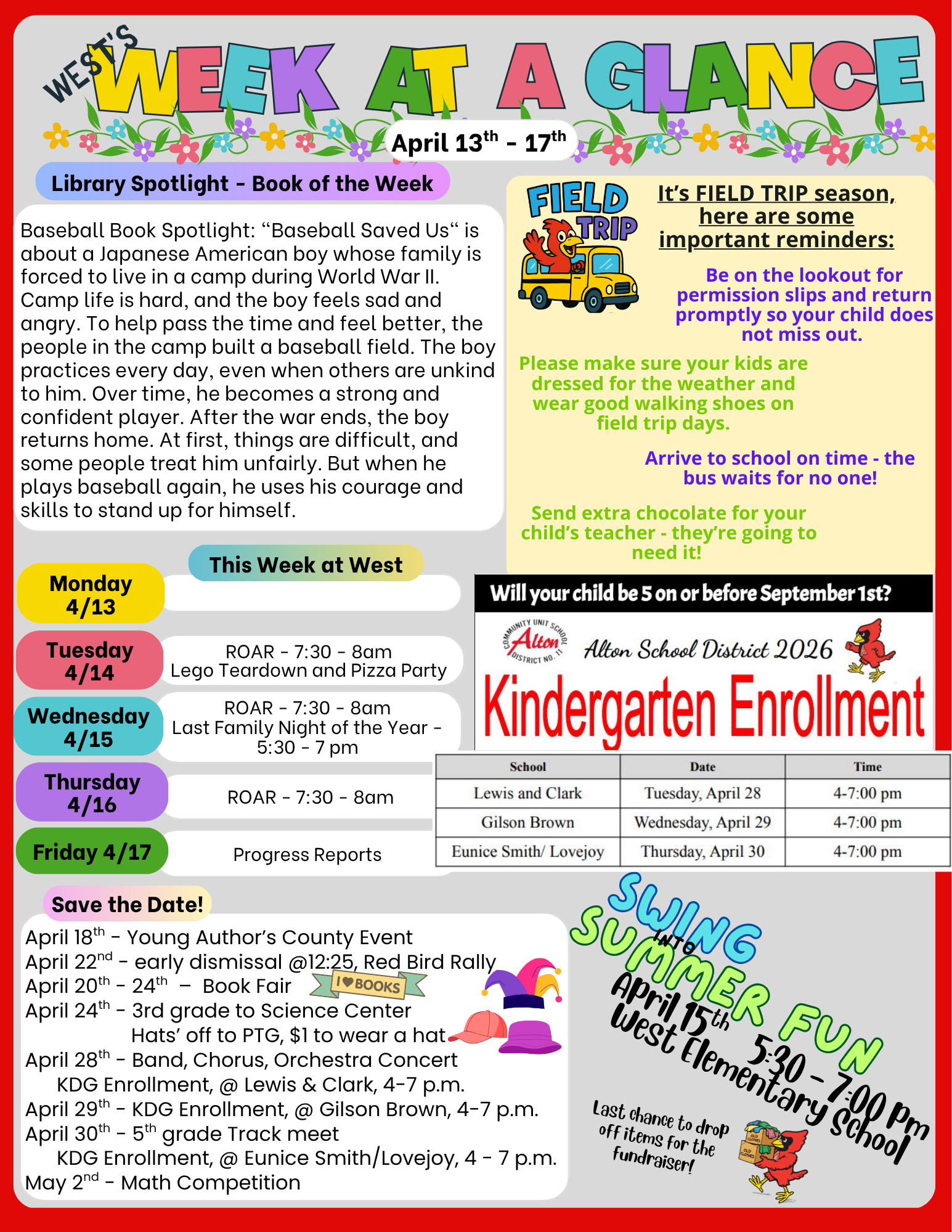 Check out this week's edition - keep up on all that is happening at West in just a single glance. Also, be sure to Click Here for our story of the week How Baseball Saved Us. Have a great week!!